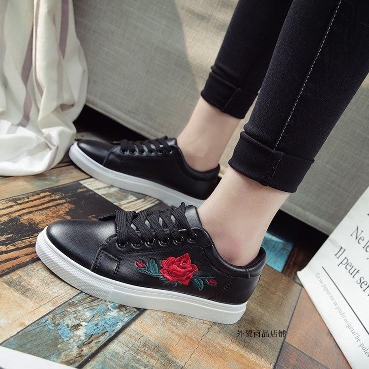 Rose embroidered little white shoes